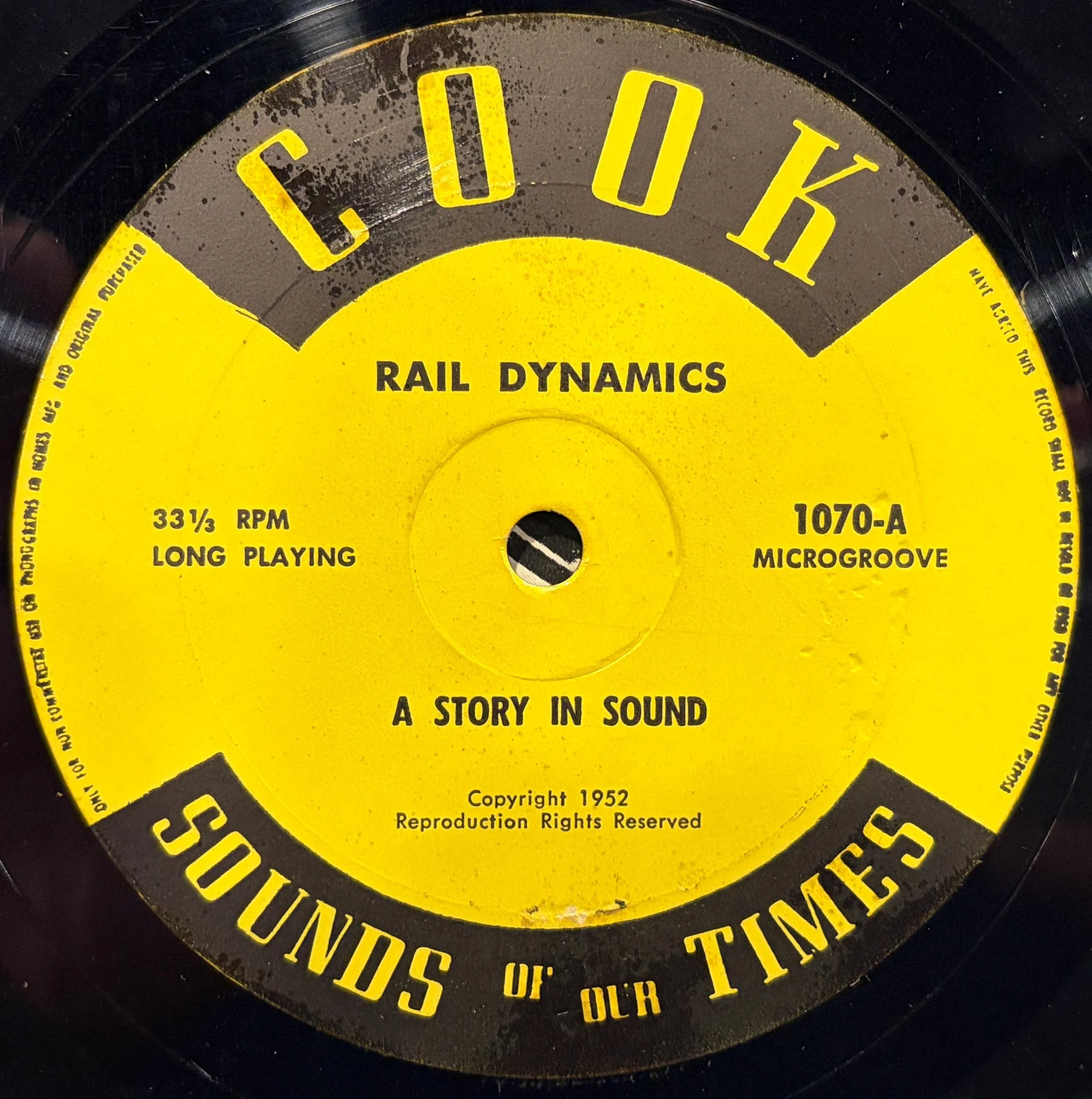 The record above is a favorite in my collection not simply for the fact that it’s a great recording, but primarily because the 10” version I have was once owned by John Prophet. This record was one of John’s favorites as well. I’m featuring only side A of the record; “A Study in Sound.” Released in 1952, Rail Dynamics put the realism in the recording by placing the microphone right on the New York Central train it features. I’m sure you realized that this record was not played at 78 rpm even though it’s was initially released as a 10” LP. Even though all three record formats were around by 1952 - 7” 45 rpm, 10” 78 rpm, and 10” 33 1/3 rpm (with 78 still in use although beginning to wane in popularity), Cook Laboratories knew there was no way they’d be able to release “A Story in Sound” in its entirely if it was limited to producing the track at three minutes or less; which was the maximum length you could put on a 10” 78rpm record. The 7” 45 was not quite the popular format it would eventually become just a few years later.